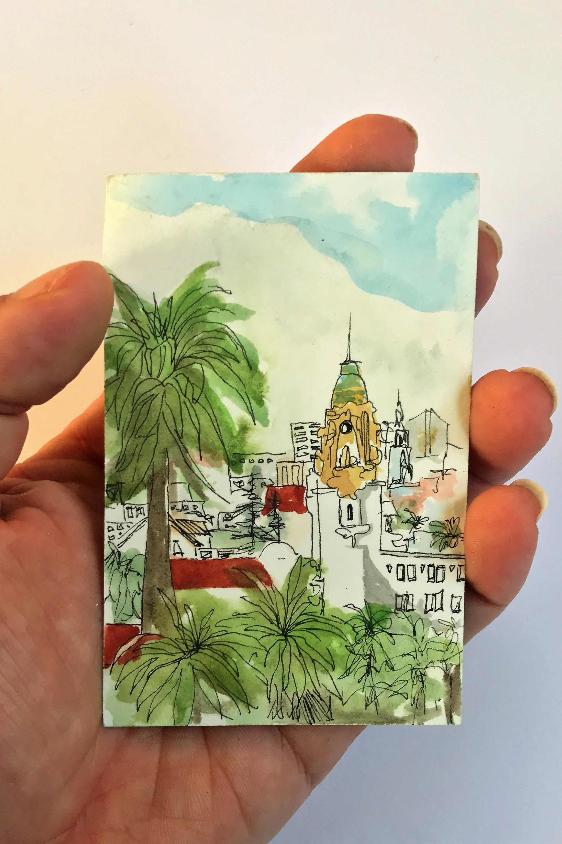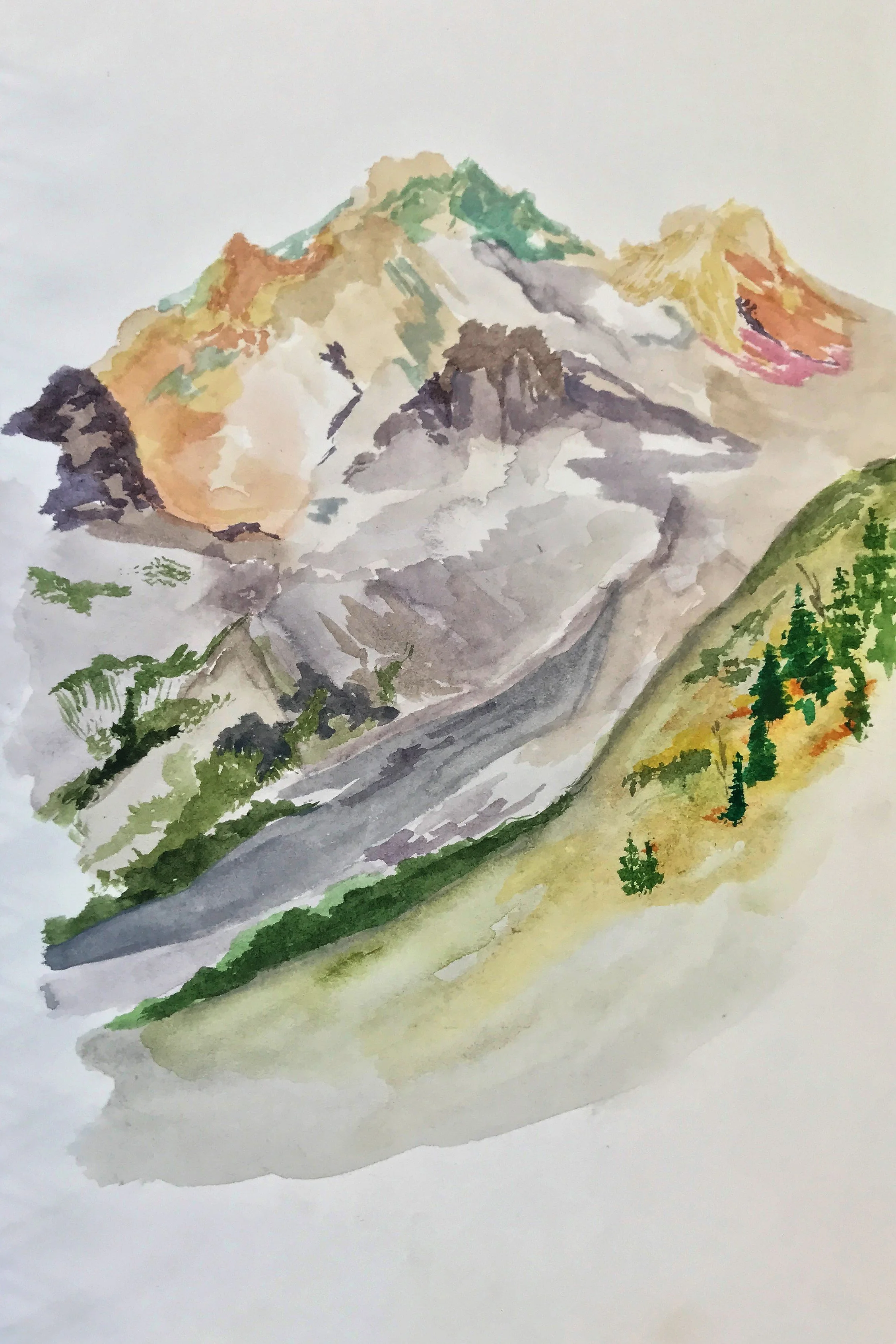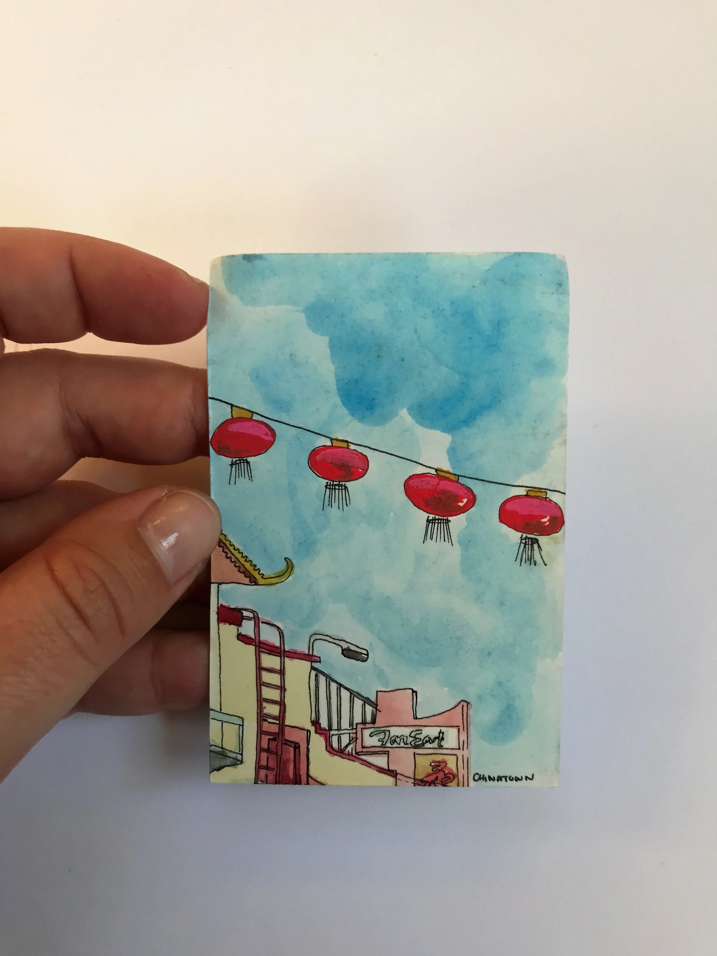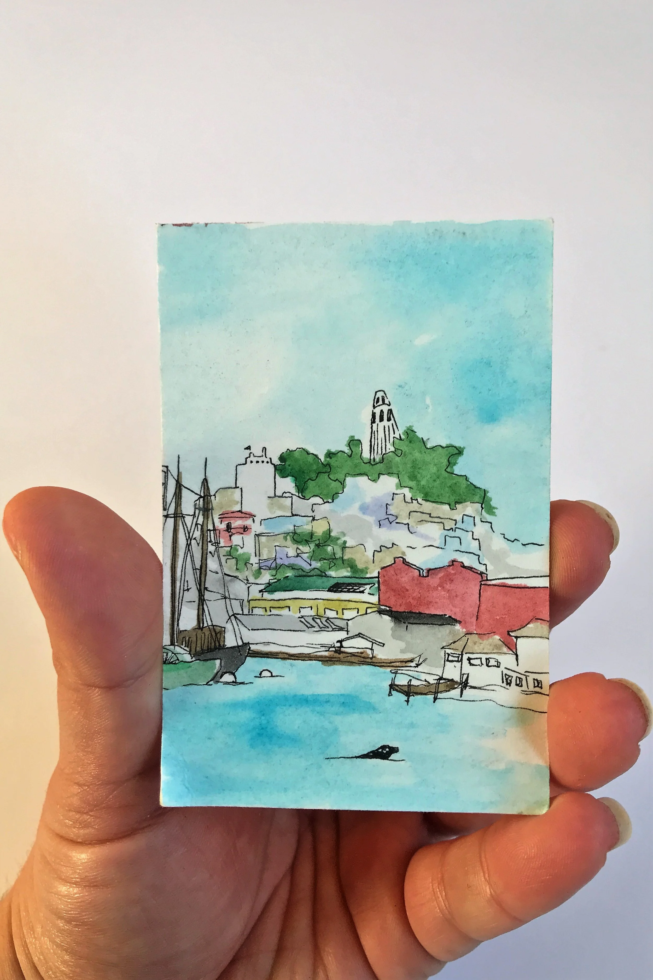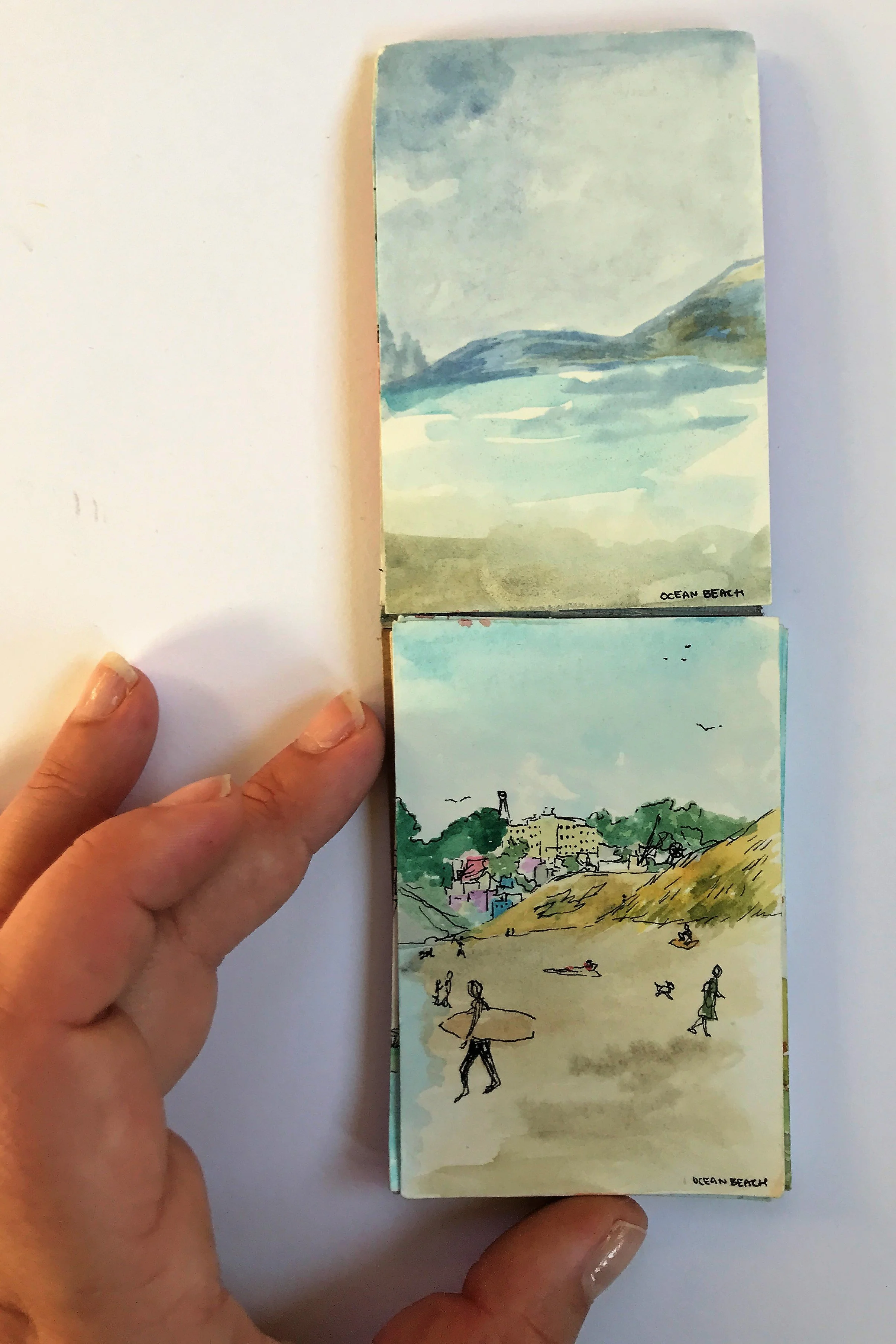 When painting with watercolor, I almost exclusive paint “en plein air” wherever, whenever. Throughout long hikes, during walks in my neighborhood, and on many modes of transportation. All of the paintings here were done on-the-go, outside of my studio.