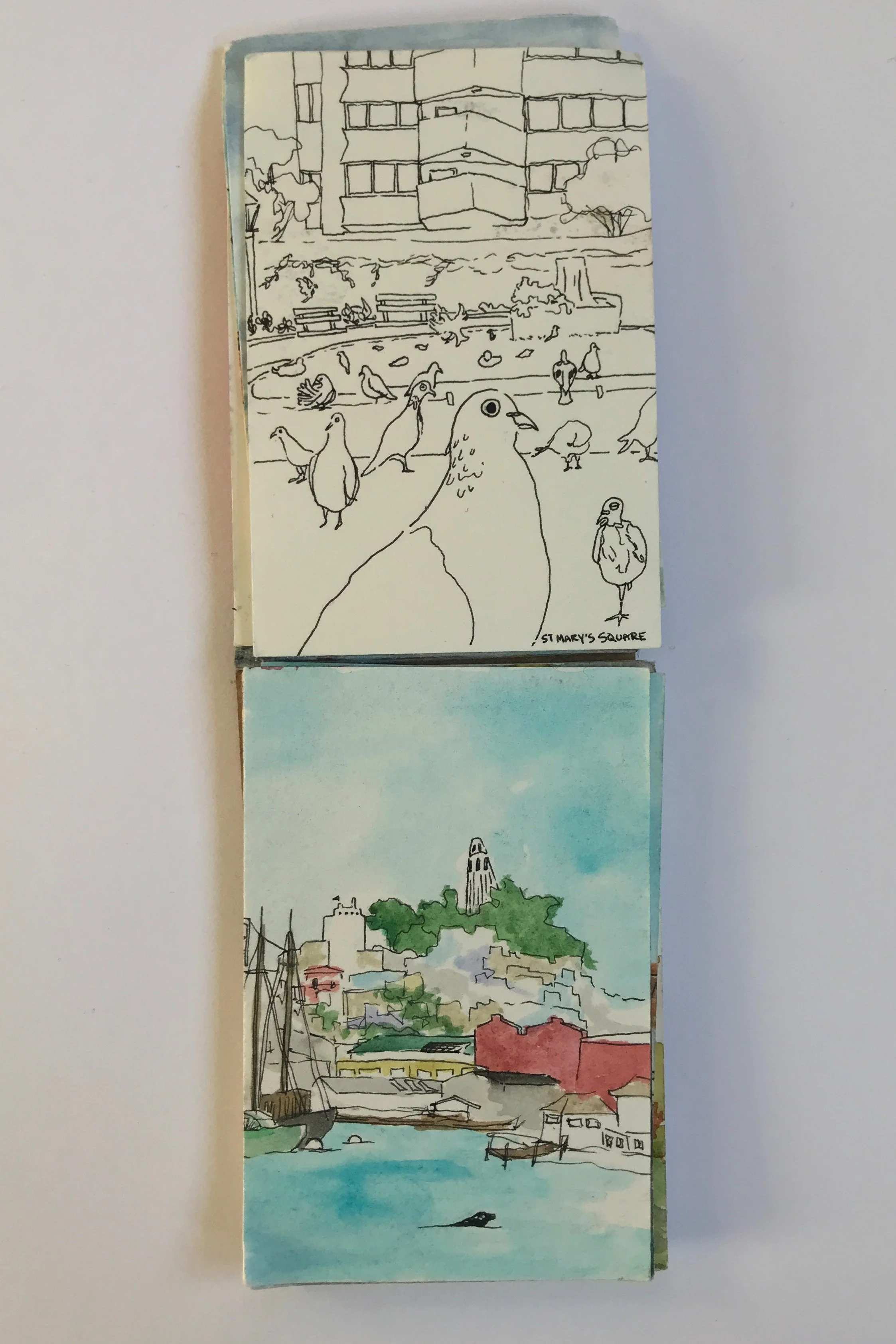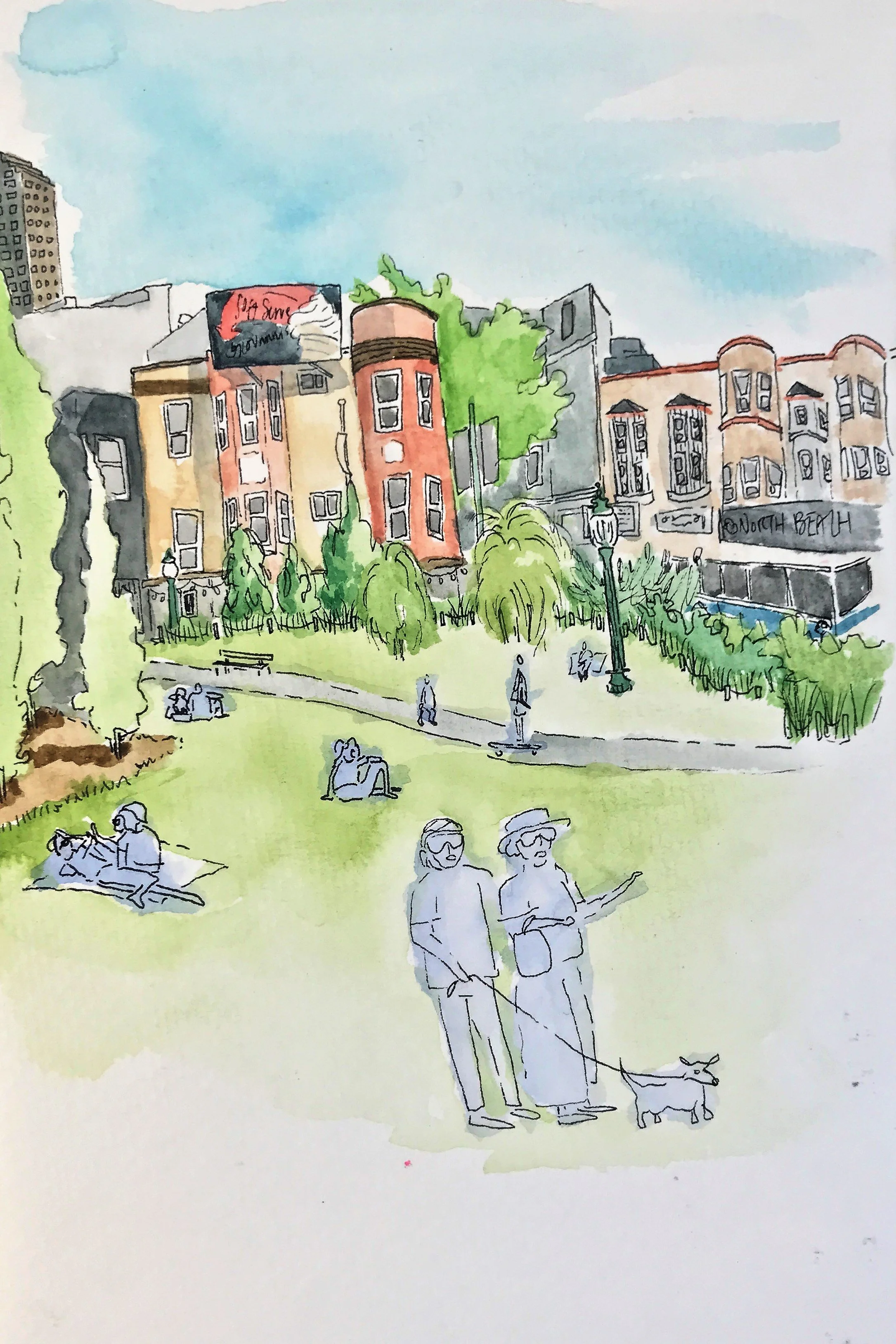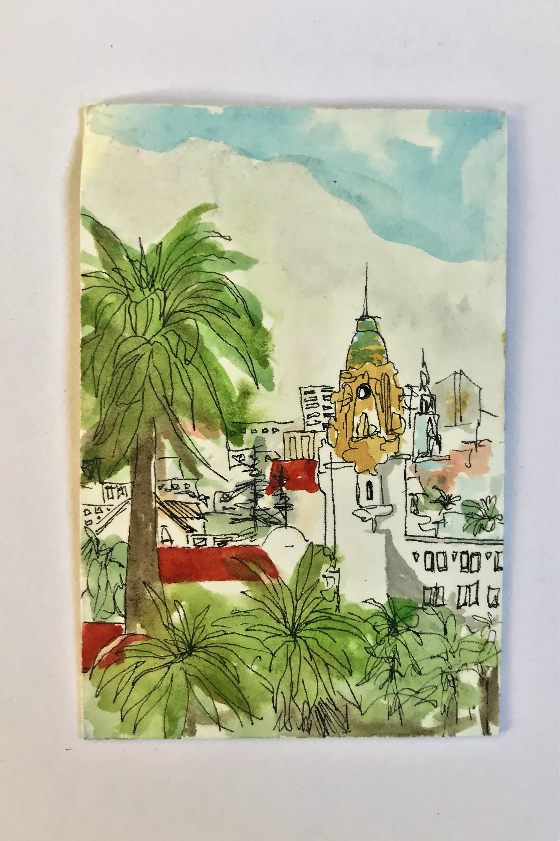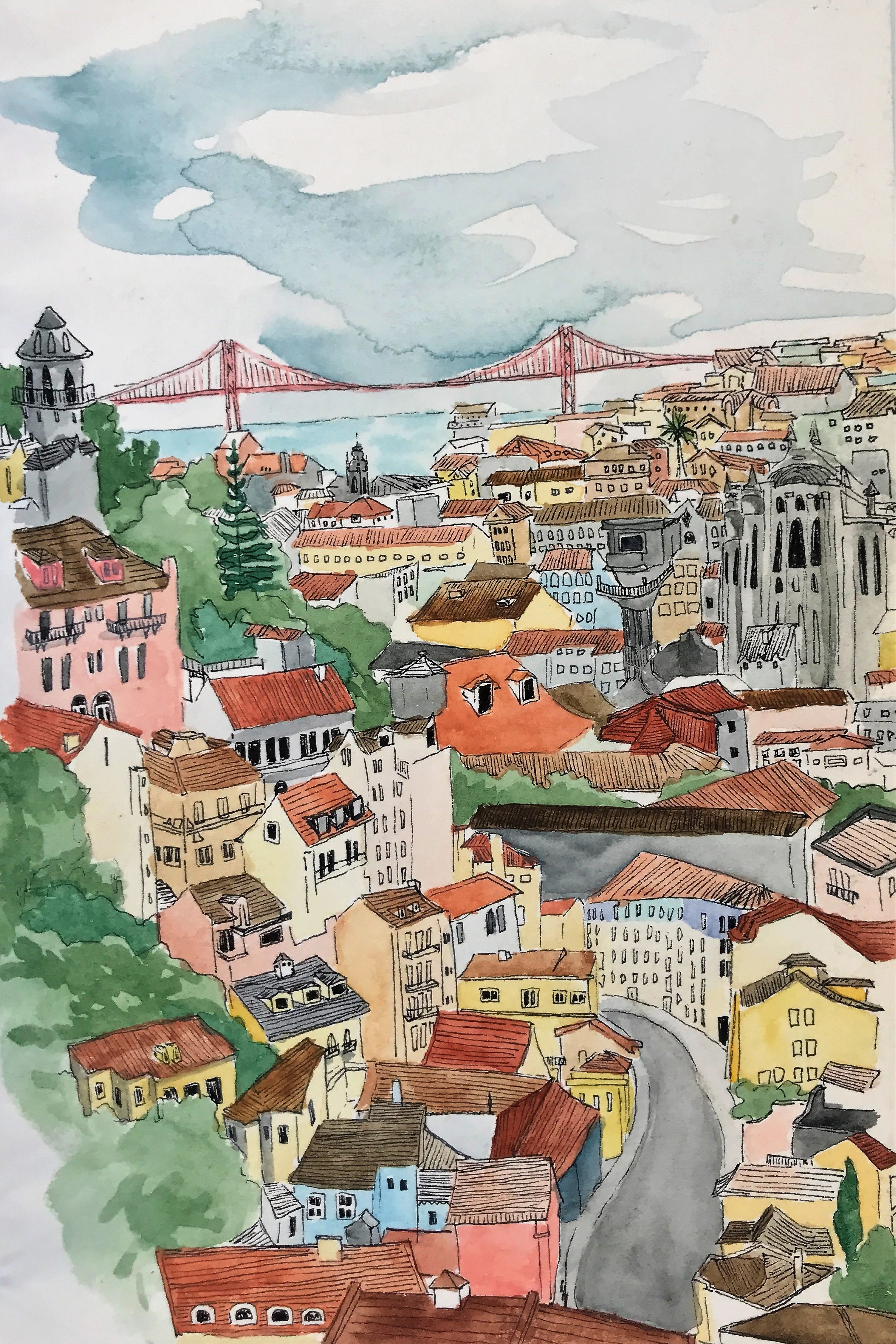 When painting with watercolor, I almost exclusive paint “en plein air” wherever, whenever. Throughout long hikes, during walks in my neighborhood, and on many modes of transportation. All of the paintings here were done on-the-go, outside of my studio.